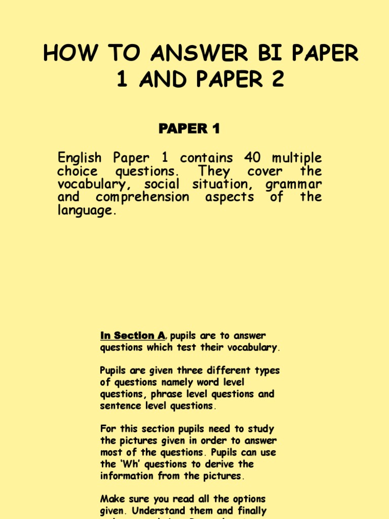 Bee 1 sample paper candidate.pdf. Download english upsr paper one. P.point english language paper 1 upsr by muhamad sofi hashim 5950 views. For more information about the exams and for more sample papers go to: The extracts your exam questions are based on will be longer than the ones here. 92%92% found this document useful, mark this vijaya malar gunushakran. Please note that these examples come in sets that follow the questions sequence of the actual exam. Sample question paper english language and literature class 10. As well as the example responses, this page has useful phrases that. In this post, we give you sample responses to section 1 of the 2020 english standard paper 1 for english standard common module: 10 full pdf related to this paper. All the best in sitting for your upsr examination 2013! (3) there are two parts in this paper.